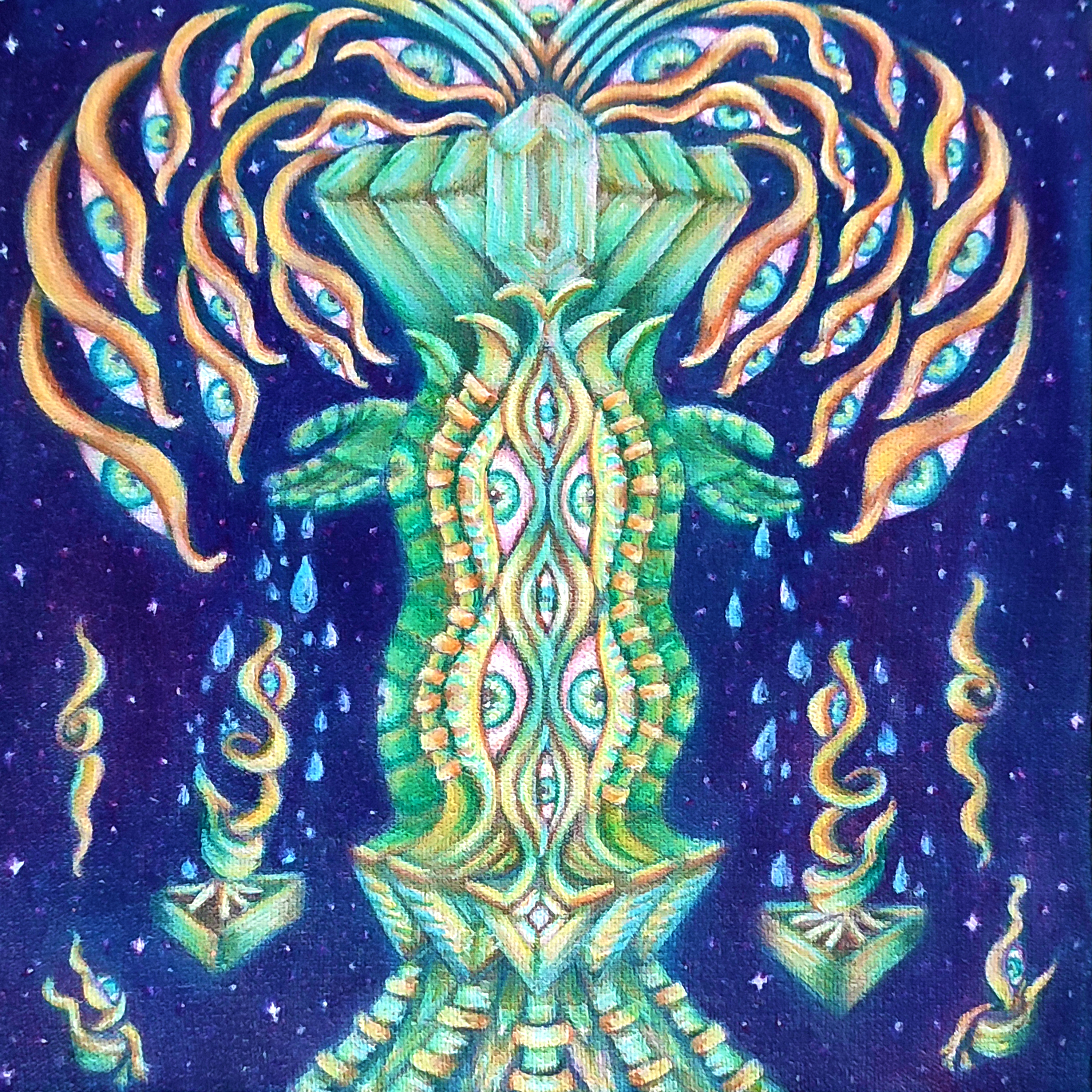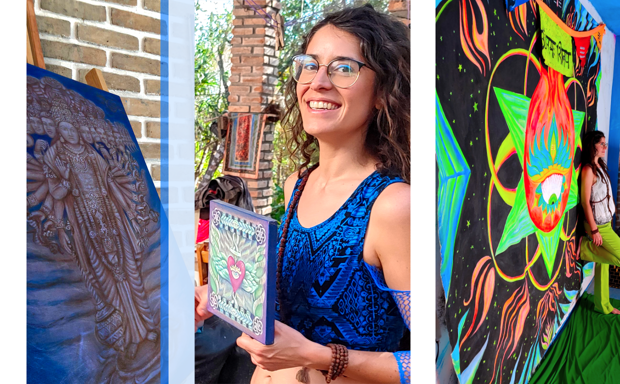 Desde 2008 , inpirada em psicodelia e arte visionária, segue uma força incontrolável de desvendar os mistérios da vida através da criação de arte. No início, colocava suas ideias no papel com lápis de cor, caneta feltro e caneta nanquim. Em 2010, após fazer um curso na Academia Brasileira de Arte - ABRA de ilustração digital, começou a fazer arte digital, com mixed media, escaneando desenhos próprios e trabalhando neles digitalmente, surgindo assim a série de ilustrações digitais chamada Infinity Fractals. Série essa que foi impressa em Lycra e assim nascendo a possibilidade de decorar e expor em festas e festivais de São Paulo e do Brasil !